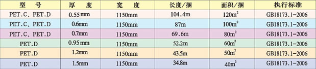 1.產(chǎn)品構成 SY-PET聚脂高強復合防水卷材,選用聚乙烯含有PET材質做防水芯層,兩表面用熱軋非織造布稱為PET.C防水卷材,兩表面用短纖針刺非織造布做增強層稱為PET.D防水卷材(兩種卷材以下簡稱PET防水卷材) 2.產(chǎn)品特點 a. PET防水卷材最大的特點就是PET材質夾在中間,大大提高了產(chǎn)品的機械強度,而且質地柔軟并附有彈性,隨服性好,易施工。 b. PET防水卷材上下非織造布纖維呈無規(guī)則立體交叉結構,形成多孔狀表面,可用多種膠粘劑粘接,均可收到良好的粘接效果。 c. PET防水卷材與本公司生產(chǎn)的SY-JF-1高效膠粉或SY-JZJ-1膠粘劑、SY -JF-2接縫密封膠粉配套施工,粘接剝離強度可達到規(guī)范要求的15N/cm. d. PET防水卷材用水泥膠粘劑粘結時,水泥膠粘劑進入卷材的表面隙中,隨水泥固化為一體,故粘接永久牢固。 e. 施工后的PET防水卷材表面可直接進行裝飾、裝修(如貼瓷磚,鑲地板磚等) f. 對粘貼PET防水卷材的水泥基面含水率沒有特殊要求,只要沒有明水即可施工,且保證工程質量。 g. 該產(chǎn)品無害、無毒、無污染,屬綠色環(huán)保型產(chǎn)品。 3.使用范圍 該產(chǎn)品適用于建筑、水利、環(huán)保和交通等領域的防水、防滲、防潮、隔汽和防污染工程。如建筑工程:屋面、地下、廁浴間等;水利工程:水庫、堤壩、圍堰、渠道等;環(huán)保工程:垃圾填埋場、污水處理廠、冶金化工污染物堆放場等;交通工程:橋梁、地鐵、公路、鐵路、洞體、渠道等;園林工程:屋頂花園、種植屋面、園林小品等。 4.產(chǎn)品規(guī)格(依據(jù)工程需要和國家有關規(guī)定在下列規(guī)格中選擇,如有特殊要求另與我公司商定)