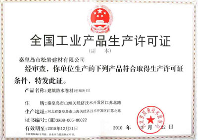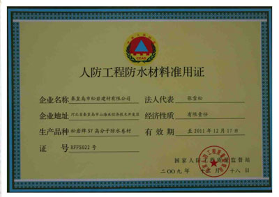![]() 全國(guó)工業(yè)產(chǎn)品生產(chǎn)許可證 | ![]() 人防工程防水材料準(zhǔn)用證 |