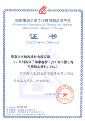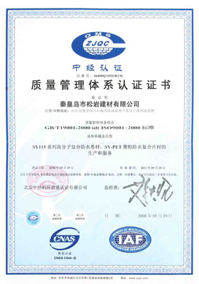 ![]() 中國(guó)建筑防水協(xié)會(huì)會(huì)員證書 | ![]() 質(zhì)量管理體系認(rèn)證證書 |